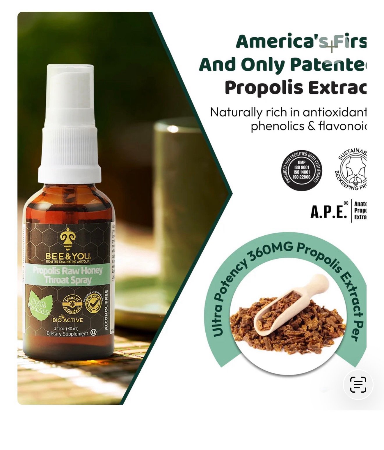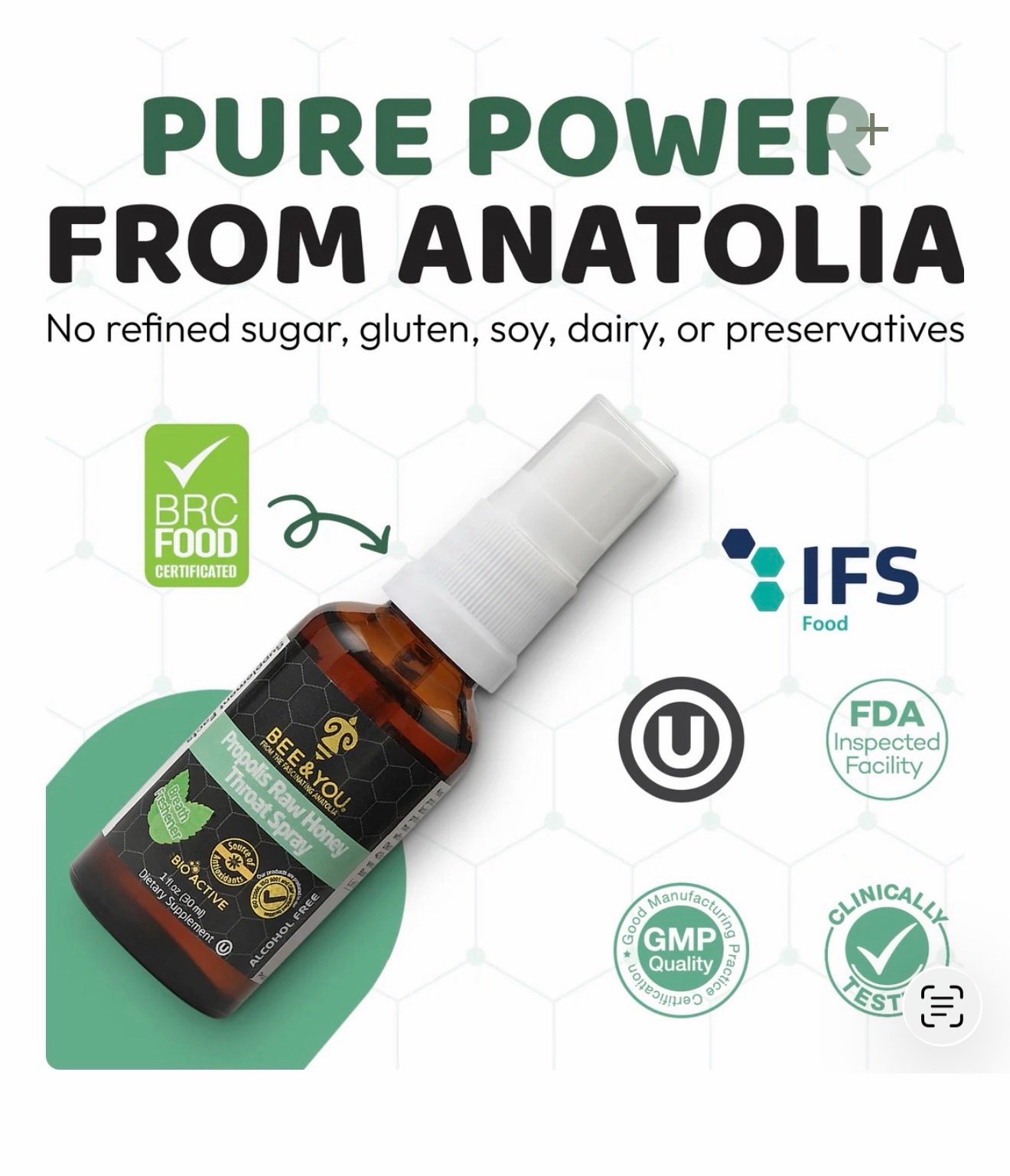 Propolis Raw Honey Throat Spray offers a naturally soothing oral experience. It is specially formulated with Pure Patented Anatolian Propolis