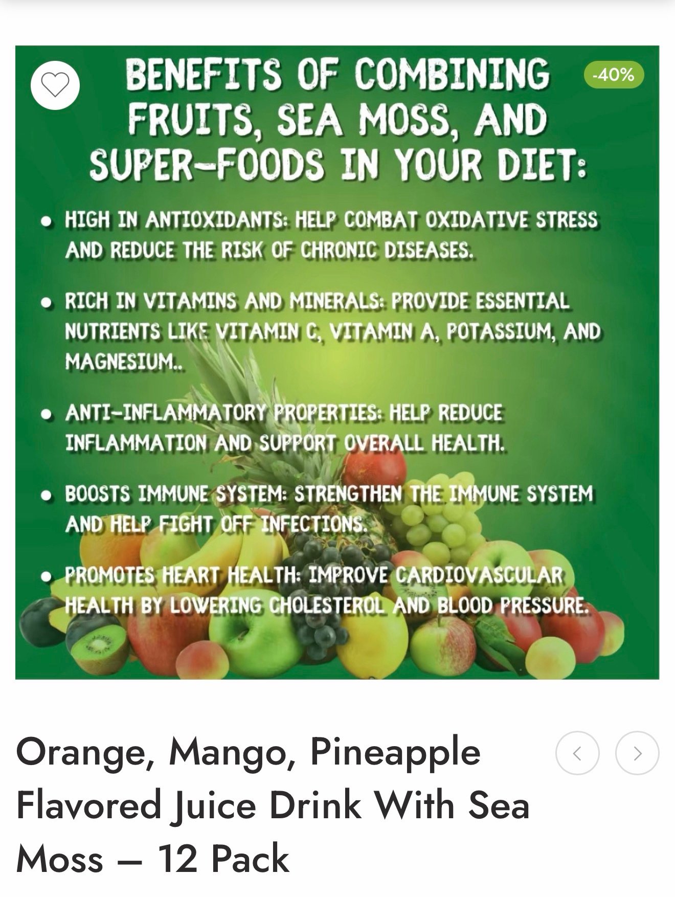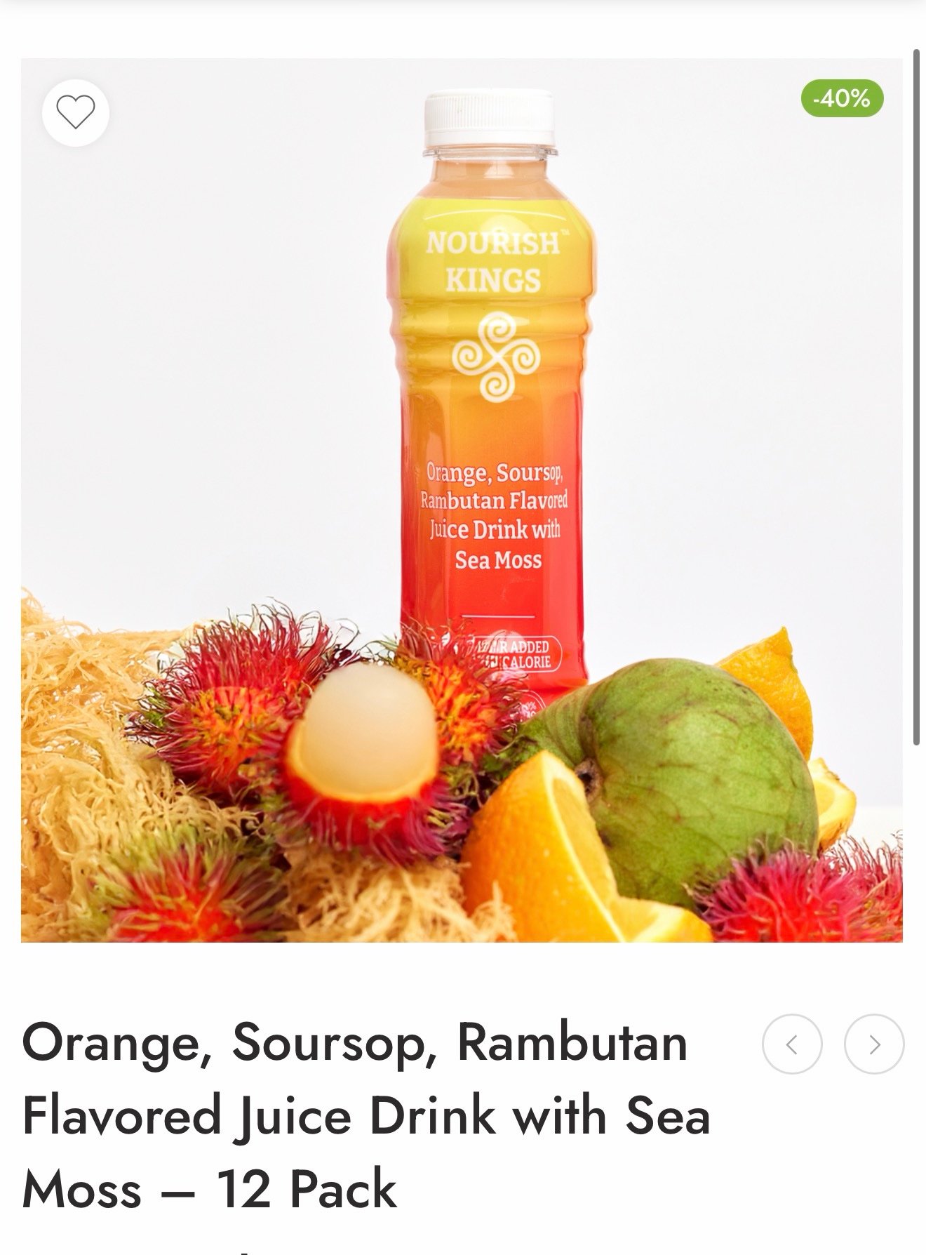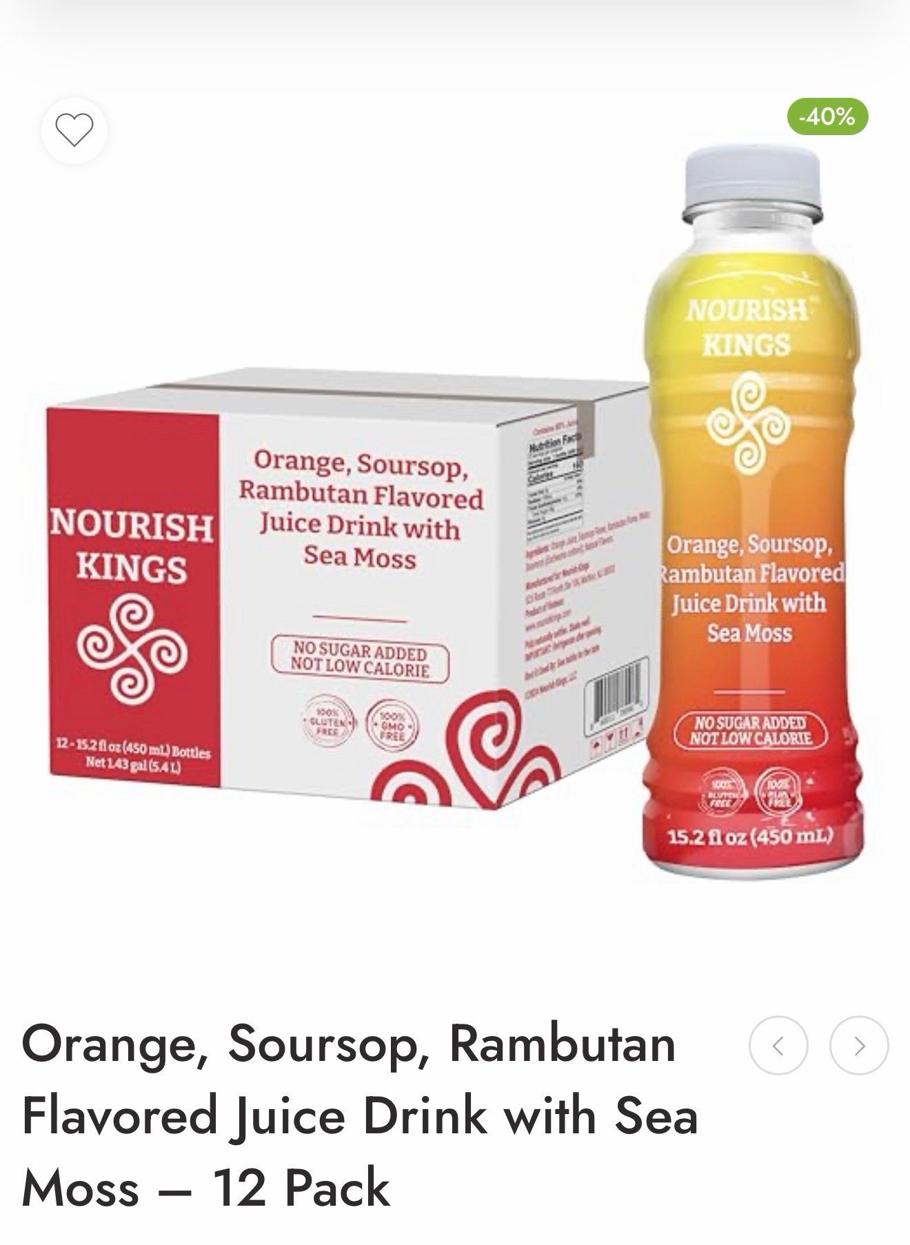 Nourish Kings Sea Moss drinks are line of tropical, cold-pressed beverages made with sea moss and a blend of exotic fruits. They are marketed as a healthy and functional drink, with flavors like Mango